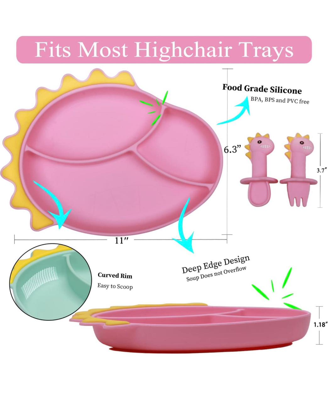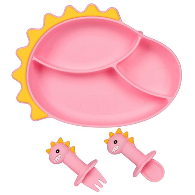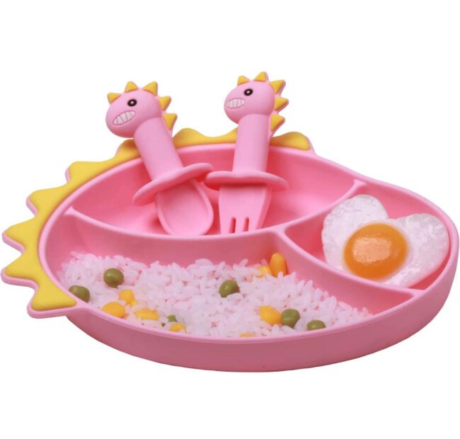Set: Incluye plato y cubiertos de silicona.